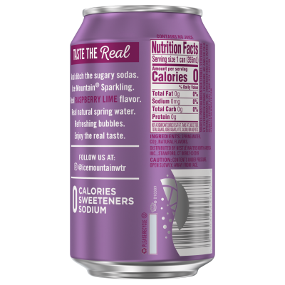 Our raspberry lime-flavored sparkling water includes natural flavors of raspberries and limes. It’s a sweet and zesty burst of flavor for your taste buds.